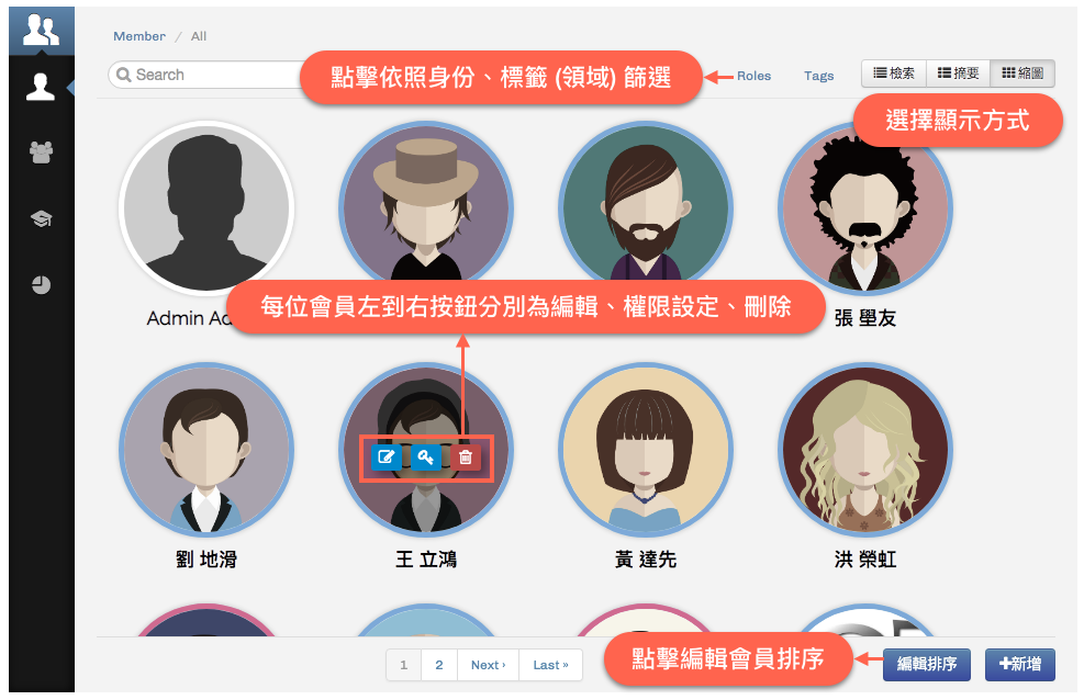 系統管理員可以點擊任何會員的「編輯」按鈕,修改會員資料。